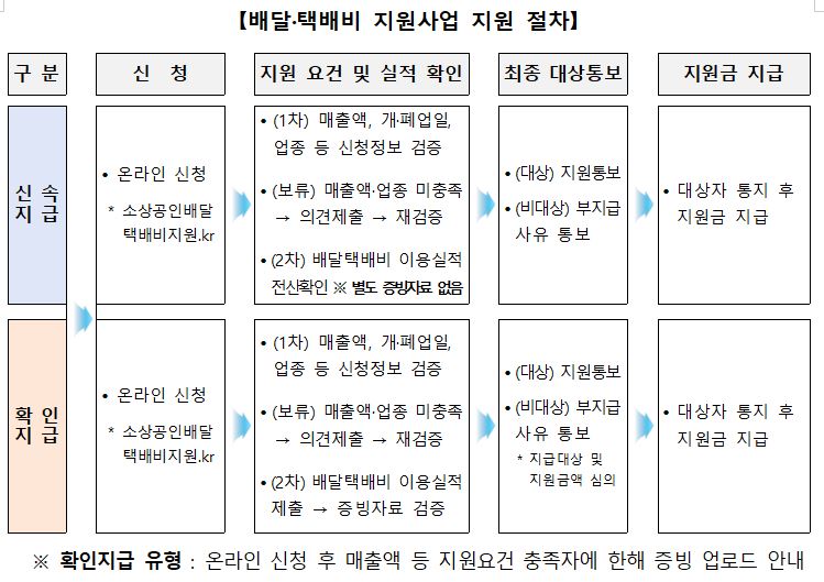 - 배달·택배비 지원은 소상공인이 제출한 실적과 금액에 따라 지급하며, 잔액은 추가 증빙 시 검증을 통해 지급