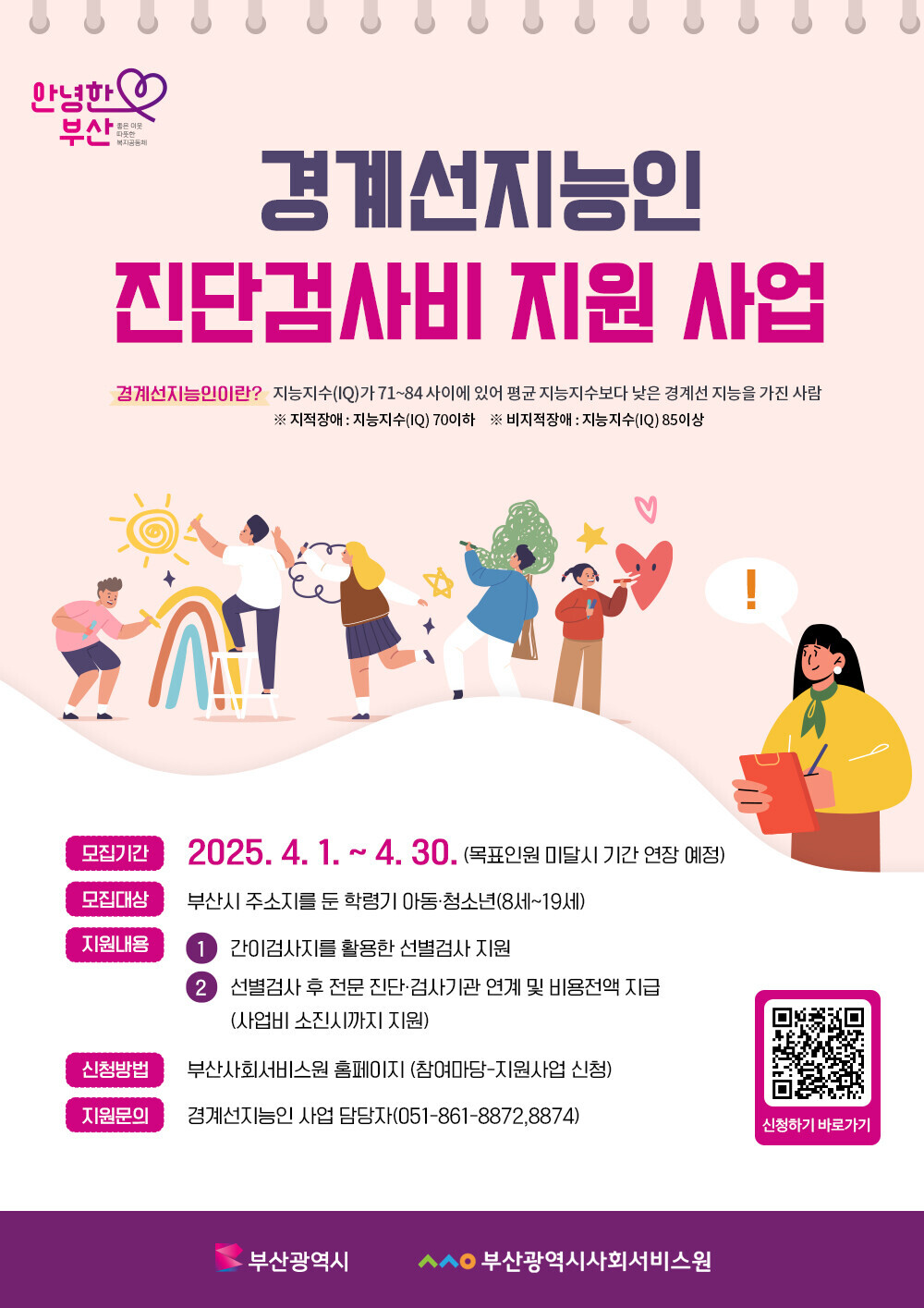 [부산 돌봄정책] 아동청소년, 청년 경계선지능인 진단검사비 지원 사업