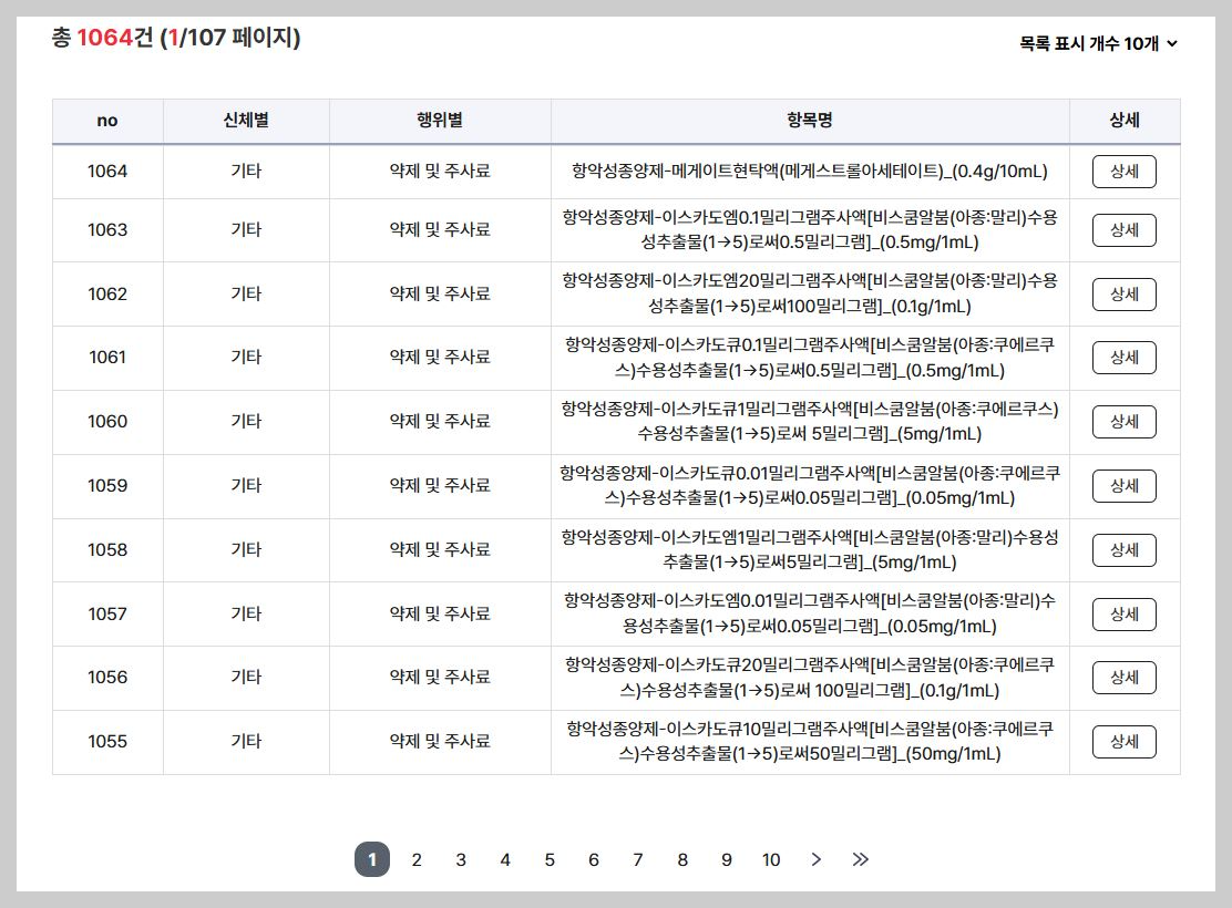 현재 비급여 정보 포털에서 제공하는 정보는 비급여 항목 1,064개, 질환 91개, 의료기술 재평가 결과 54개 등입니다.