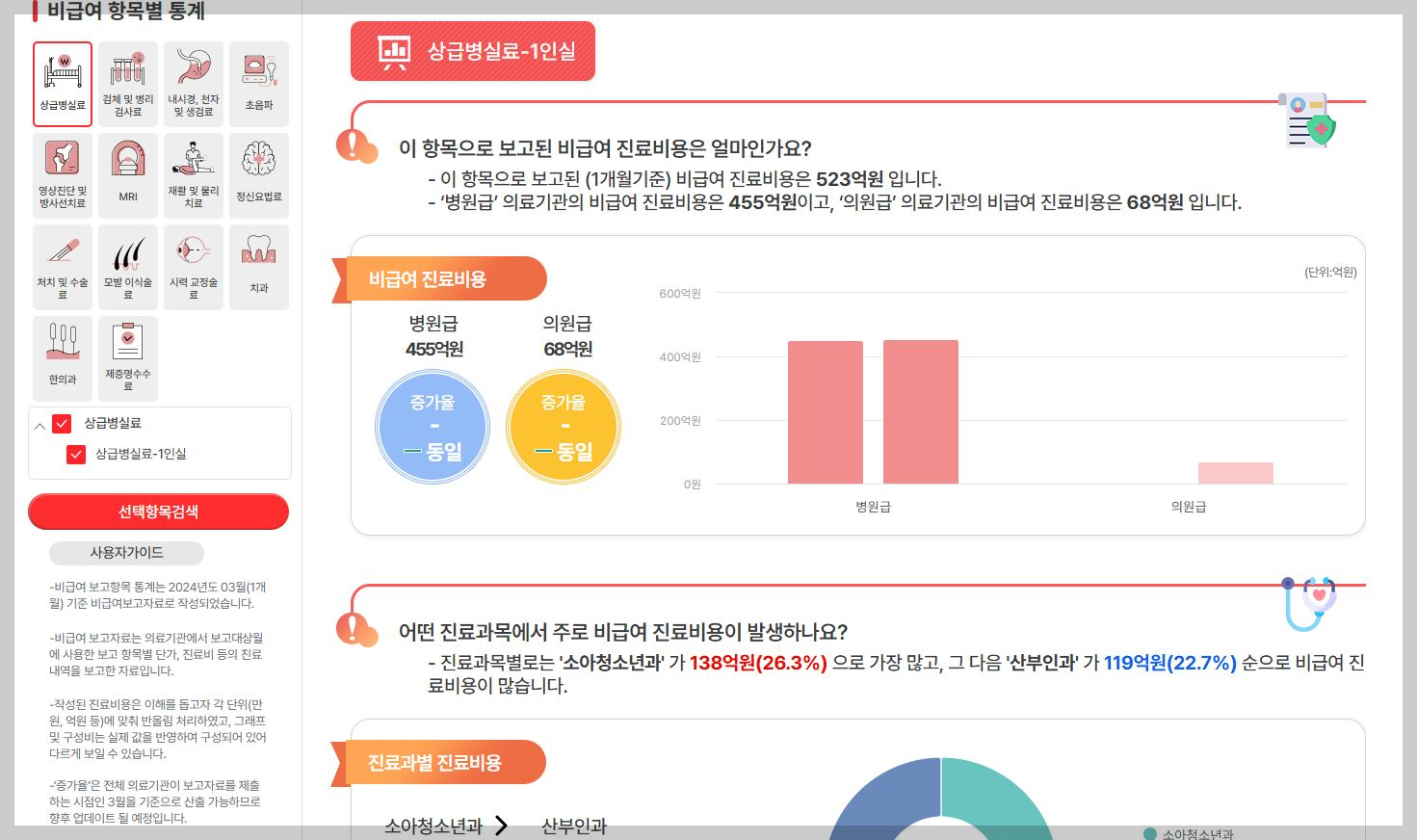 - 전국 의료기관 비급여 모든 정보를 한 곳에서 볼 수 있어 비급여 정보에 대한 국민의 접근성이 높아집니다.