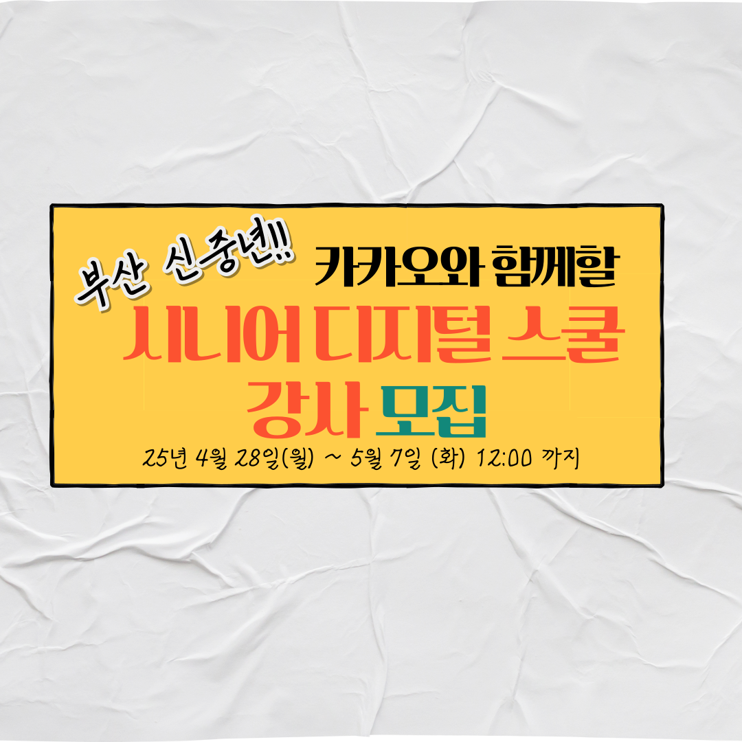 부산시는 신중년 인재를 채용하고자 시니어금융교육협회와 연계하여 디지털금융교육강사양성교육과정 "찾아가는 시니어 디지털스쿨 강사"를 4월 28일부터 5월 7일까지 모집한다고 합니다. 일자리 창출과 더불어 디지털 격차 해소를 위한 일자리사업에 지원조건이 되신다면 도전해보세요! 자세한 일정과 강사선발조건, 강사활동지원 등 정보, 상세히 알려드리겠습니다.