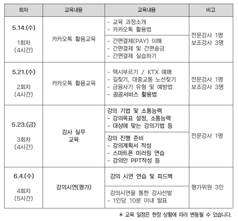카카오톡 시니어디지털강사 교육일정 / 출처 : 부산 장노년일자리지원센터 50+부산포털 공지사항