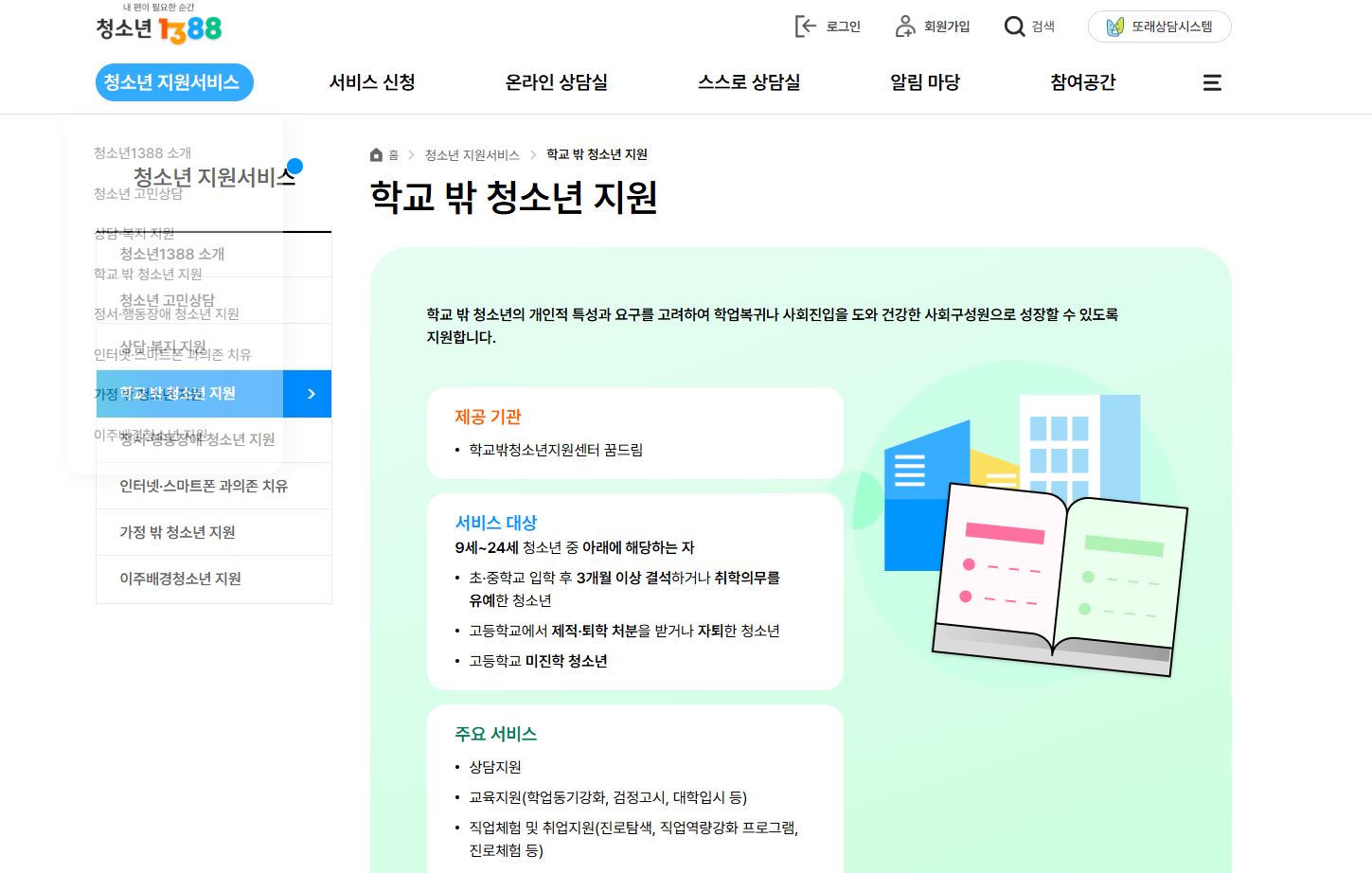 서비스 대상 : 9세 ~ 24세 청소년 중 다음에 해당하는 자